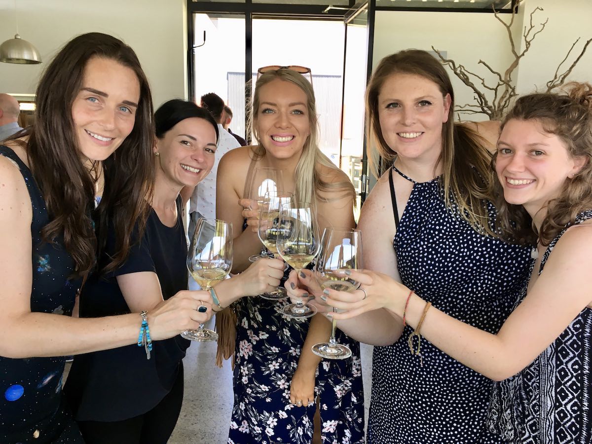 These three gave us their best Charlie's Angels impression What a happy gang of wine tasters We collected Eliza and long time friends and work colleagues from Melbourne who were celebrating their friend